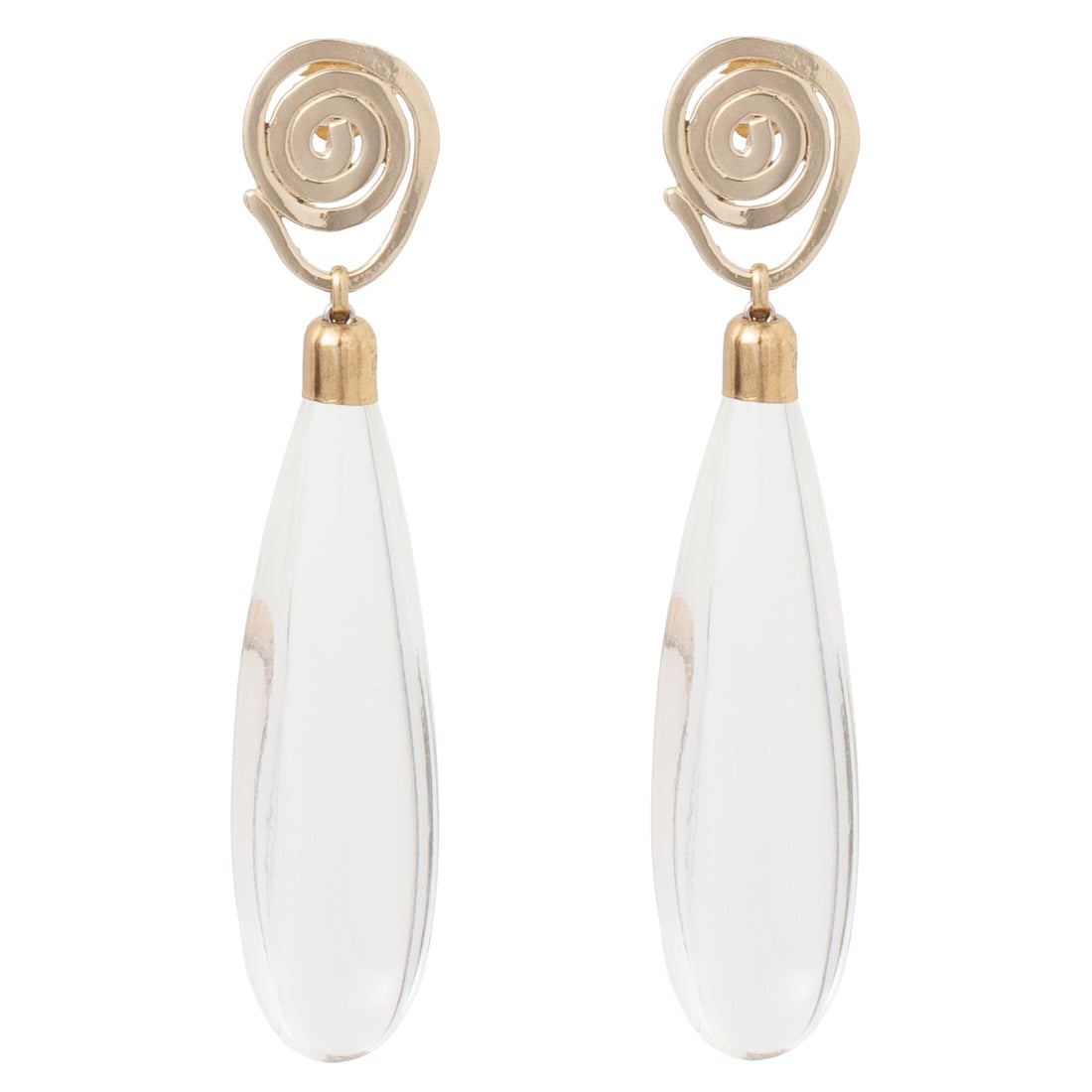 The Spiralis Earring pairs a hand-formed brass swirl with a bold, oversized lucite drop for a striking, sculptural look. Still lightweight and easy to wear, it offers a more dramatic take on our Teardrop favorite while keeping the same effortless movement. Handcrafted in NYC from upcycled brass and vintage lucite.