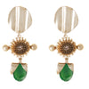 Our Iris Earrings combine Millefiori vintage glass cabochons, and a vintage brass spring cab, into a towering modern bloom.