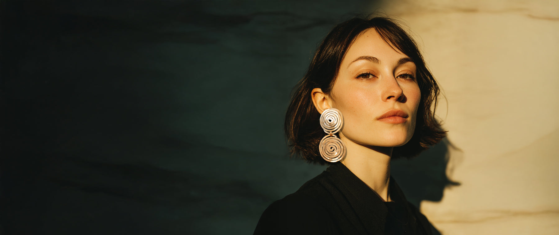 Minimal lines and spiraling forms suggest the geometry of ancient carvings, pared back yet monumental. Handcrafted in NYC using certified recycled brass, vintage glass stones, and repurposed materials from decades past.