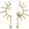 Solar Inspired Asymmetrical Brass Statement Earrings Punctuated with Vintage Glass Stones.